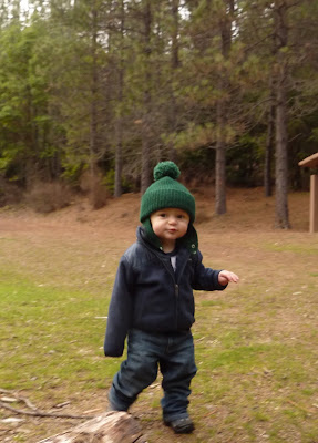 His favorite place is clearily outside. We still walk him, with the carrier or the BOB stroller, but as long as it's not nap time, he wants to be walking on his own two feet, tromping around, exploring all the ranch has to offer. Rain or no rain. He actually loves the wet stuff and we have a tough time keeping him out of the puddles he seems to gravitate to. He'll spot one 30 yards a way and make a beeline for it and stomp around. Lots of wet feet around here! Luckily a good deal on some rain pants at REI have kept his legs semi dry.
